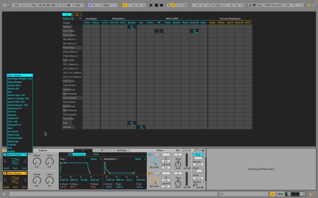 Oltre a tutte le novità di cui abbiamo parlato riguardo tutta la parte MIDI, un aspetto interessante è che Meld, il nuovo sintetizzatore aggiunto in Live 12, è il primo strumento scale aware.